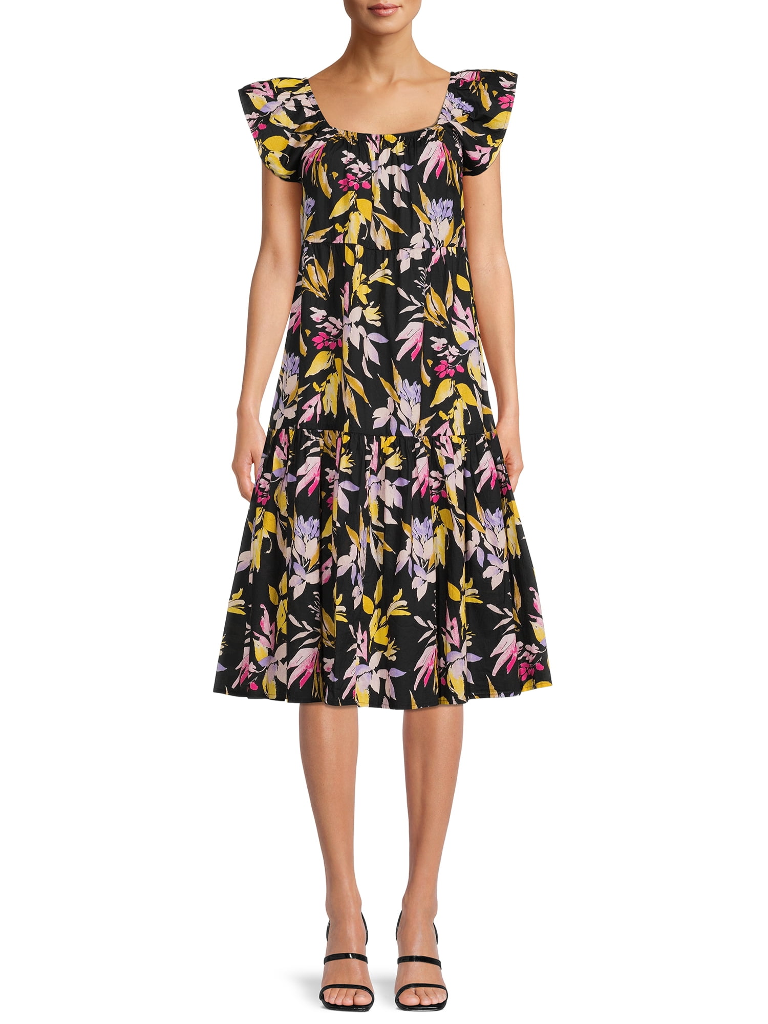 Time And Tru Women S Short Sleeve Square Neck Dress Walmart Com